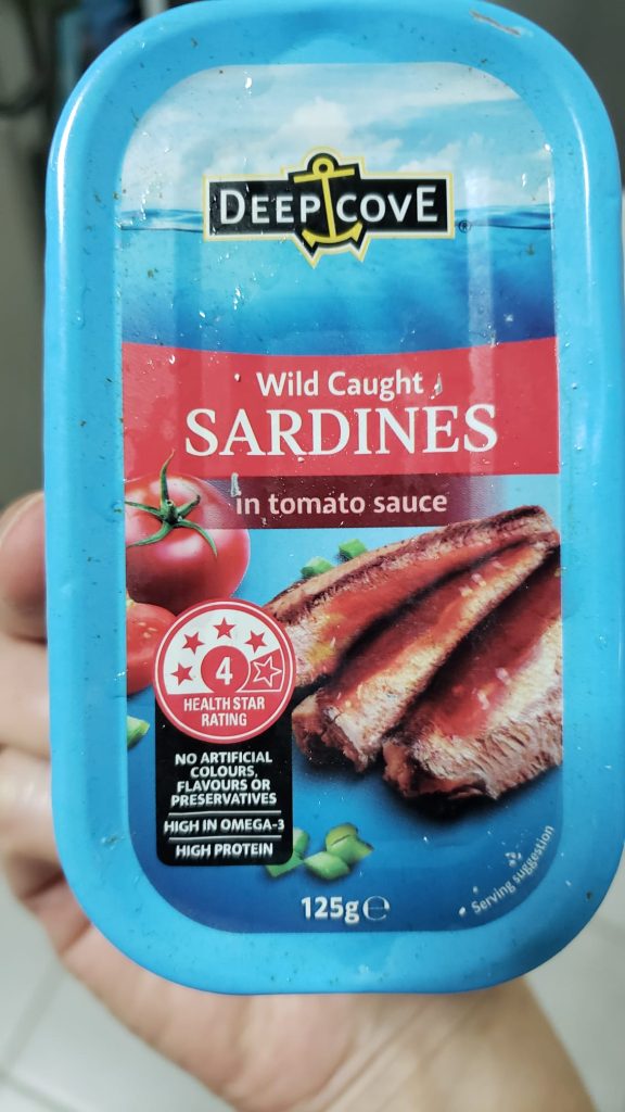 - 1 can of Sardines in tomato sauce (125g)